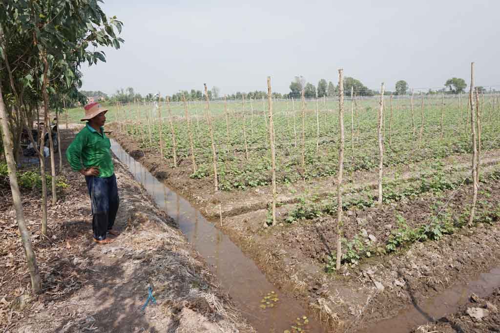 Nhờ cần cù, chịu khó, vợ chồng anh Bùi Văn Trai, ngụ ấp 3, xã Tân Thành, huyện Thủ Thừa, tỉnh Long An trồng rau màu mang lại hiệu quả kinh tế cao.